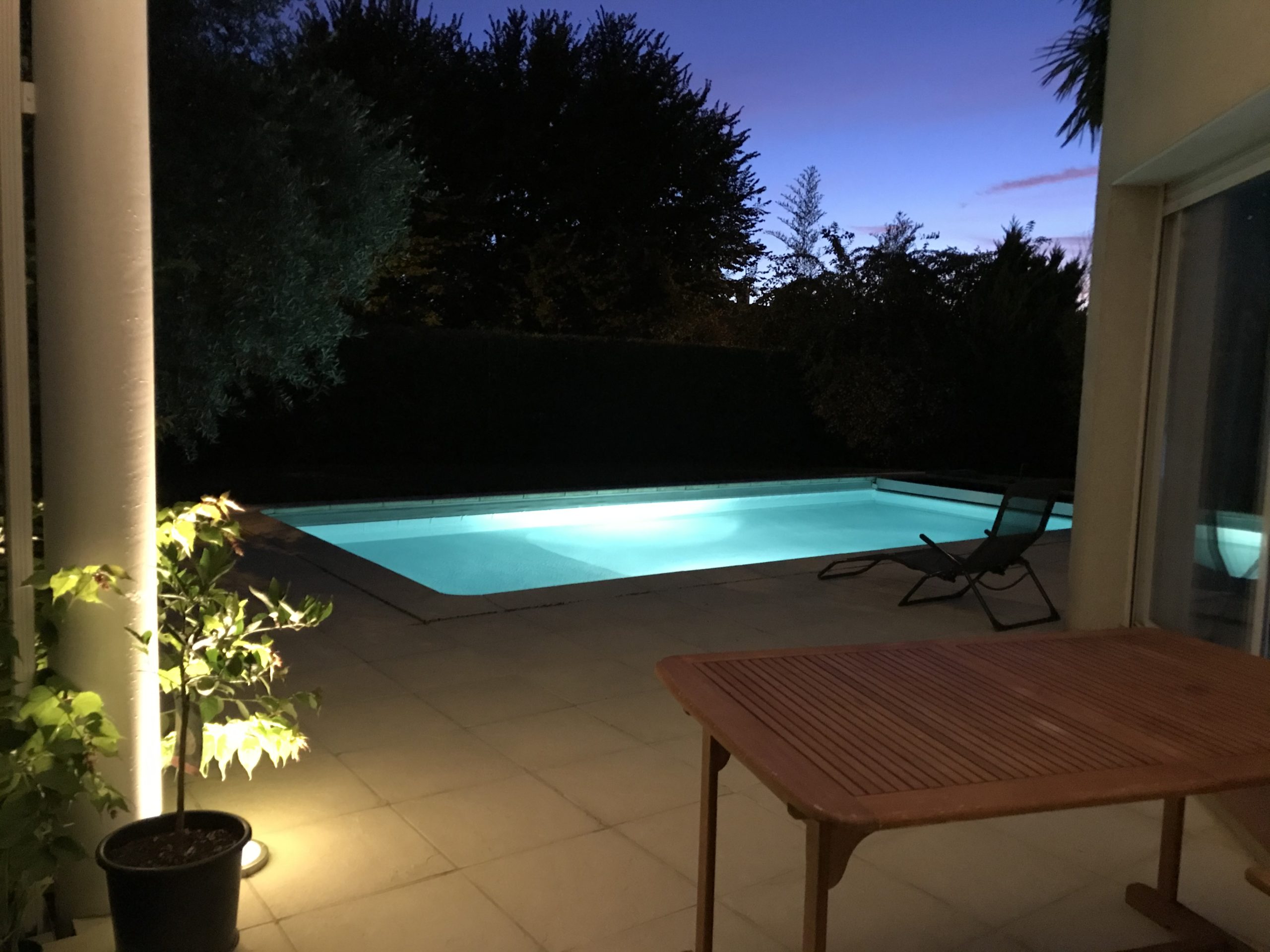 La maison se compose d’un hall d’entrée qui dessert la cuisine fermée et équipée avec terrasse, un salon séjour de 40m² ouvrant sur le jardin et sur la piscine.