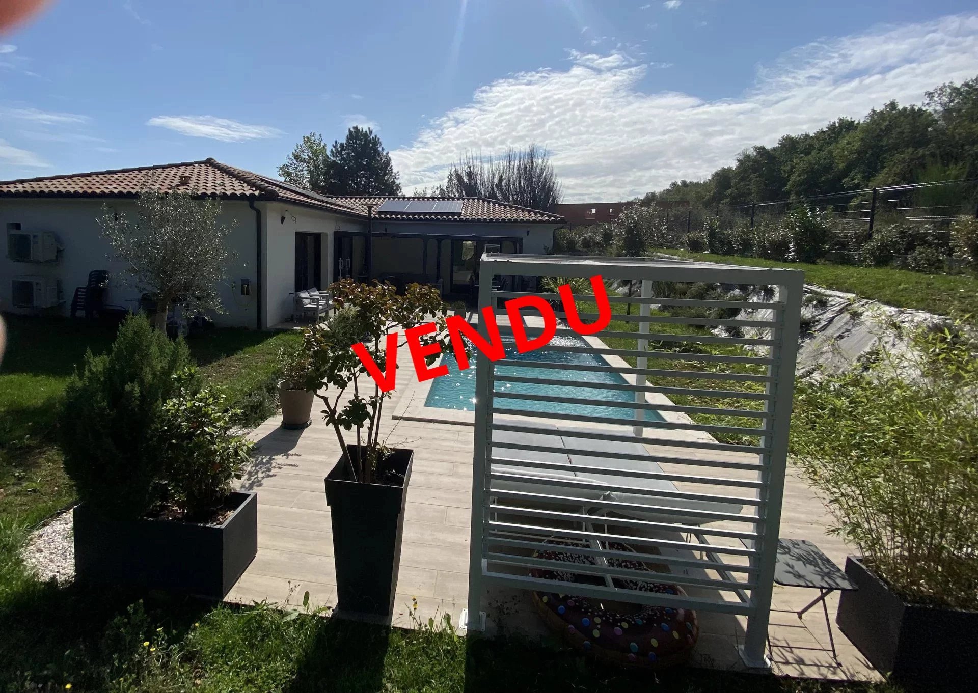 Le terrain de 1200 m² est paysagé, clôturé, au calme et sans vis-à-vis, il dispose d’une piscine .