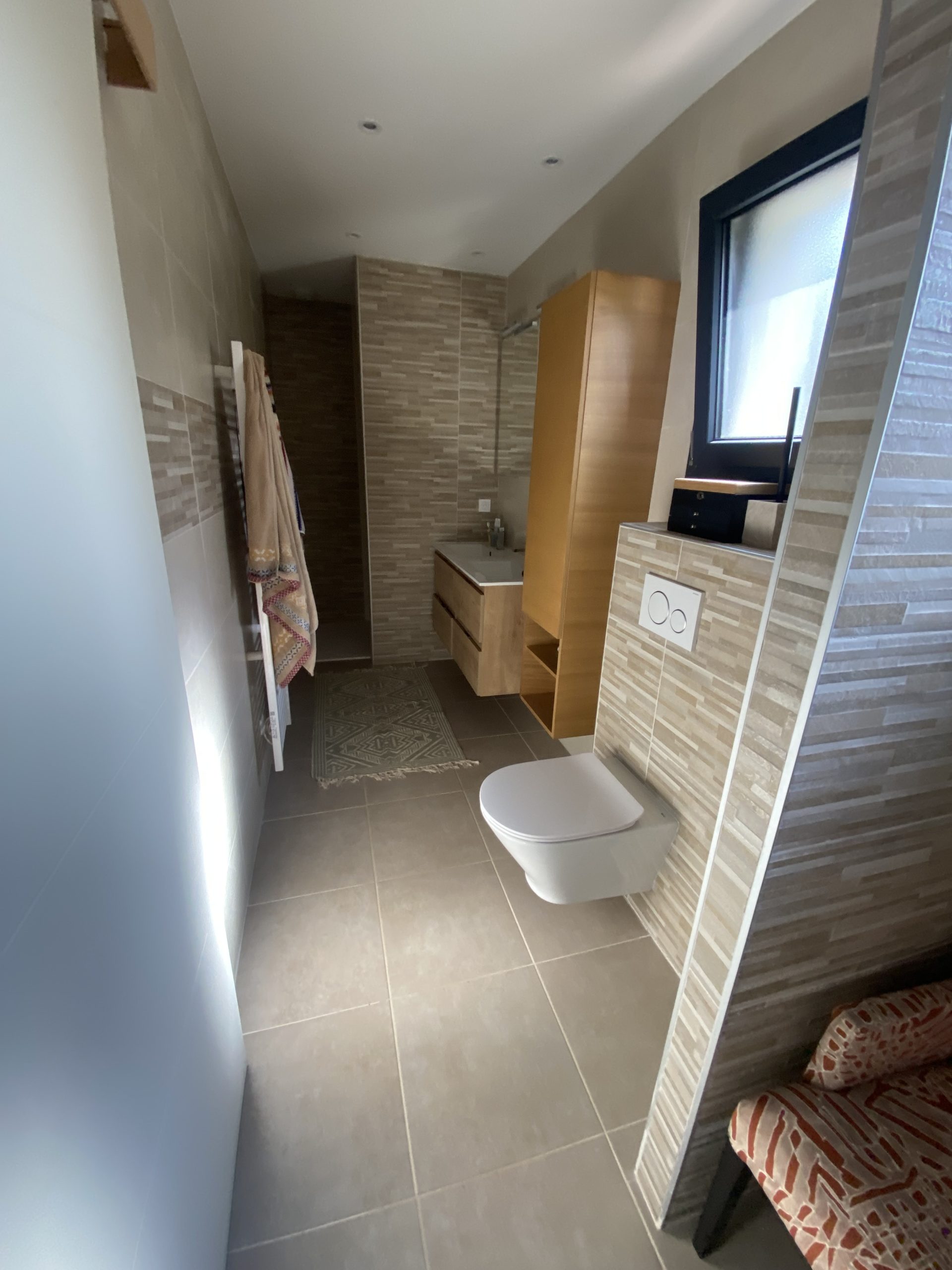 L’espace nuit propose une salle de bain, un toilette, 3 chambres dont une suite parentale avec salle d’eau et de nombreux rangements .