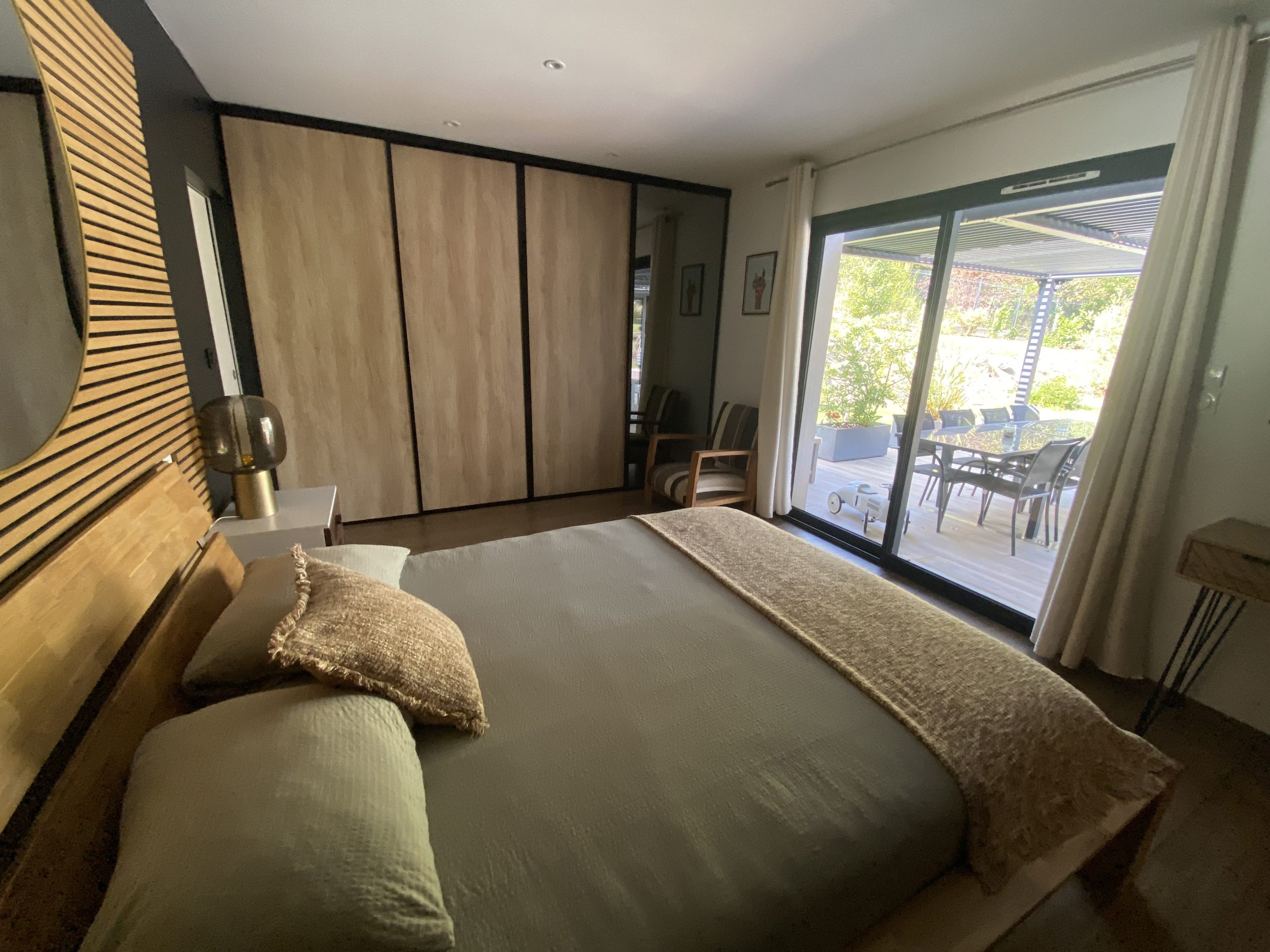 Pour votre confort, larges baies vitrées au salon, double vitrage avec volets roulants électriques, chauffage au sol via une PAC, climatisation réversible dans le salon et dans l’espace nuit, cumulus thermodynamique.